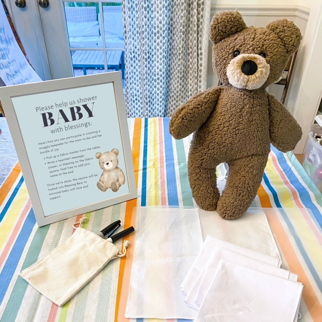 Create a beautiful and meaningful moment at your baby shower with our Blessing Bear Baby Shower Bundle. This all-in-one set makes it easy for your guests to share their blessings, and love for your little one.